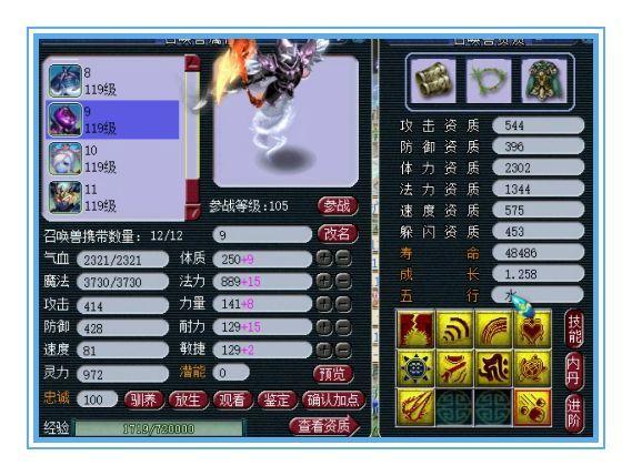 又是一只8技能瞬法须弥宠,不过这只吸血鬼是敏法宠,532的速度配上高级敏捷,出手速度特别快!
