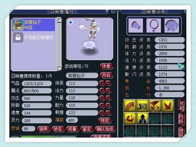 8技能瞬法须弥画魂,体力资质4205,法力资质2494,成长1.249!跟泪妖一样,这只画魂也拥有高幸运、高反震和高感知3个辅助技能!