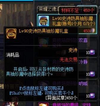 在帝国竞技场中,每个月也能用450个异面奖章兑换一个史诗防具袖珍罐,开出的史诗道具也能用于分解史诗灵魂用,不过这里获得史诗的成本略微高了一些,至于划不划算,就看大家自己的选择吧。