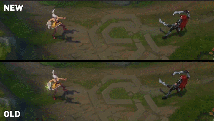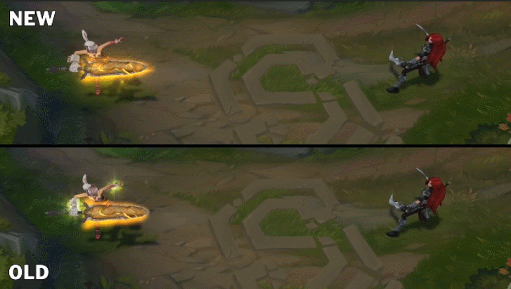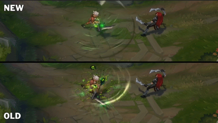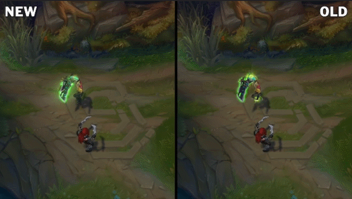 对比老版的E技能,这个护盾简直不要太明显,锐雯看起来就像被罩着一样。
