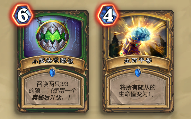 不过,说起来其实两者有很大的区别的。因为复活术是随机复活一个已经阵亡的随从,所以会有相当一部分概率会给你遥出一些相对比较弱的随从。但是永恒奴役相对优质很多,因为是发现机制,所以是三选一,会出优质随从的概率相对大很多。