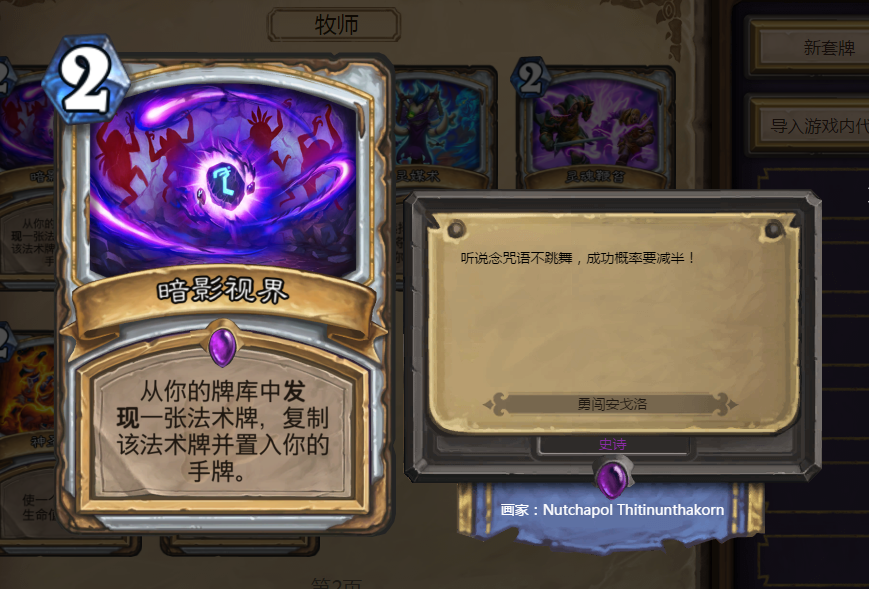 暗影视界这张卡牌不管在任何牧师的体系中都能发挥出不错的作用,从火极一时的宇宙牧到核弹牧再到现在的展览牧都会带,所以关于使用率和玩家最喜欢这一块是当之无愧的第一!同时在胜率上表现的也不错,55%的胜率更加坚定了玩家们带这张卡牌的信心。
