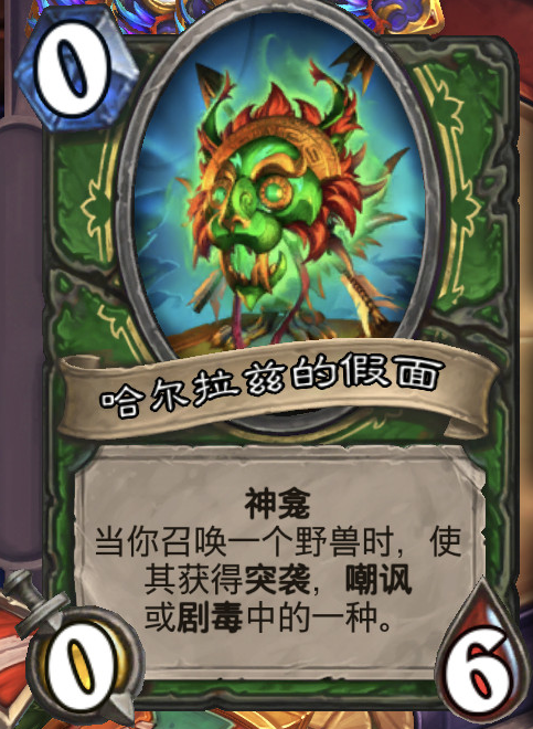 猎人-哈尔拉兹的假面:召唤野兽时候随机获得突袭、嘲讽和剧毒其中之一。