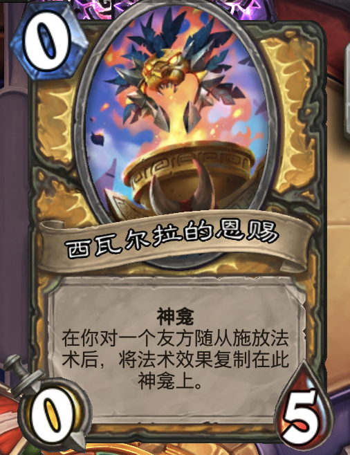 法师的神龛血量厚效果强,配合其他卡牌能在0费打出十分爆炸的AOE效果,只要消灭了一个随从还能再次使用,简直就是本周最强的神龛之一。