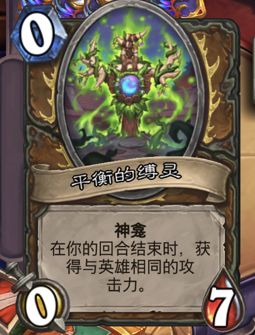 小德-平衡的缚灵:回合结束时该神龛获得与英雄相同的攻击力。