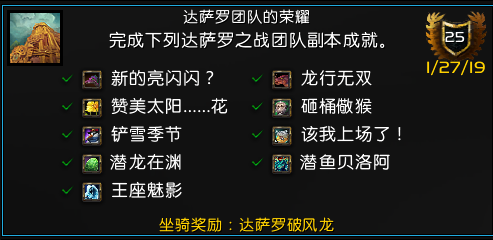 魔兽世界8. 1 版本中达萨罗团队的荣耀成就解锁后可以获得一条成就龙,不少玩家都想获得这条成就龙,这里我们来看下所有成就解锁的方法。