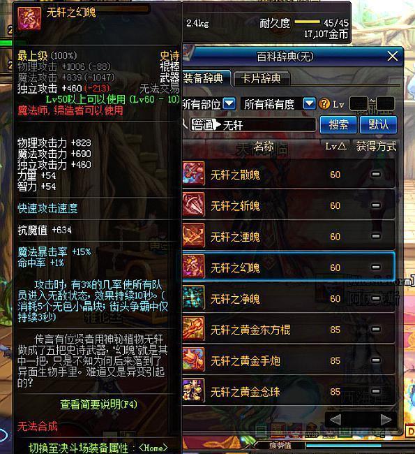 这个系列装备其实就是一个触发一个无敌的效果的装备,其中60级系列的无轩系列装备无敌效果为10秒,不过需要攻击或者是释放技能才能触发,获取方式可以通过每周的赛利亚旅馆中的狗头人商店用400个黄色次元精华兑换。85级的无轩系列装备无敌时间只有2秒,不过是使用装备指令输入触发。