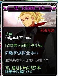 新版本的物攻魔攻过渡卡片相较于上版本同等级卡片有5点提升,价格也仅仅在30W左右,推荐作为过渡附魔。奴隶商梅希,升级后属性为25独立,售价仅仅是25W,要知道上版本固伤的毕业宝珠生肖蛇属性为30点独立,价格却上亿,所以说这是一张对固伤职业很友好的卡片,十分推荐固伤角色附魔这张卡片。