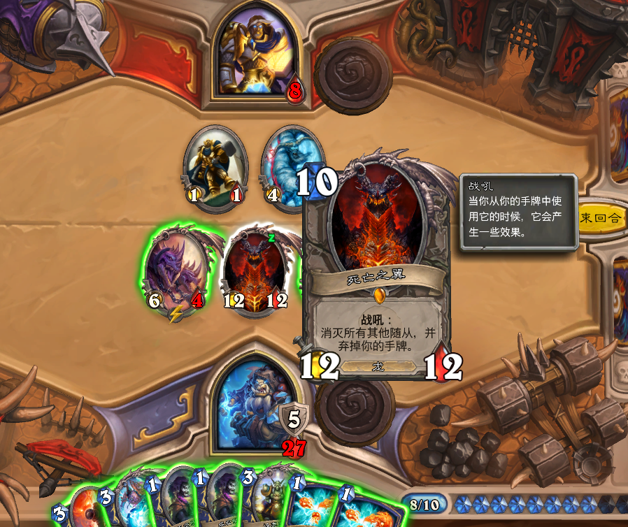 8费66圣盾嘲讽,能当墙使用可以有效阻挡对方的攻击。当他阵亡之后还能送你一把武器,简直可以说是传说随从中的战斗机。但是,假如你以8费的代价将他召唤出来,一旦被对反解掉,那未免有点让人心疼。所以,最好的结果自然是通过进化将他进化出来,这样自然能一了百了。