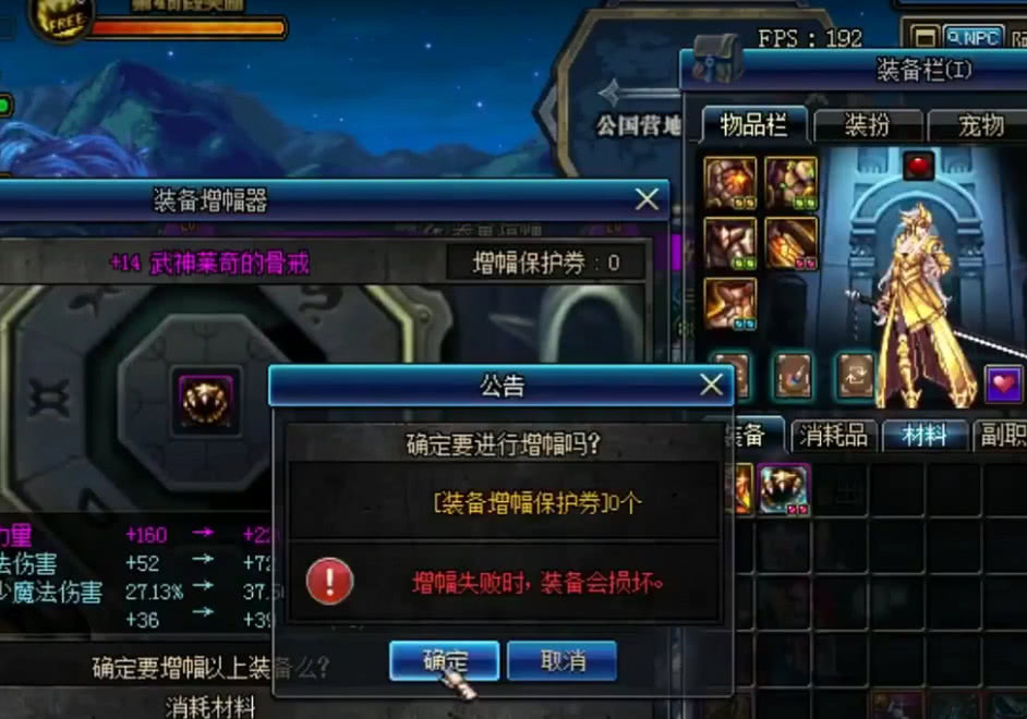 准备了一件增幅14的垫子和很多13到15的武器刀就强化了起来,其实这个场景大家再熟悉不过了,宝哥上装备都是这么上的,而且宝哥的漫游和乌鸡就是这个方法成功上16的圣耀武器,而增幅大法再现奇迹。