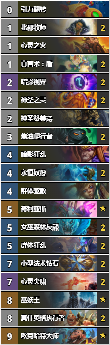 最近直播中看到部分玩家在天梯前五分段冲分时曾使用过墙牧这种非常古老的玩法,这套玩法其实也是采用了心火机制,这套玩法放弃了龙随从。反正大家只需要知道心火牧这套玩法目前挺强的,至于具体搭配什么随从,就看个人了。