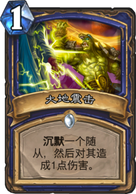 萨满的沉默卡大地震击对龙系列卡牌中的暮光幼龙有极强的克制作用,不过适用面不是很广,毕竟萨满还有另外的一张硬解妖术更全面,目前萨满的强势卡组还是偶数萨,奇数费用的沉默就更没人用了。