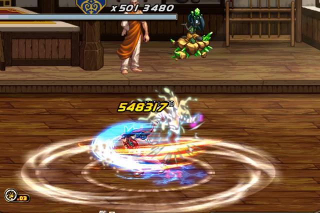 学习随机应变后变更为打击技能,自己快速回旋然后发动最后一击,对空中敌人使用会把敌人拉下地面攻击