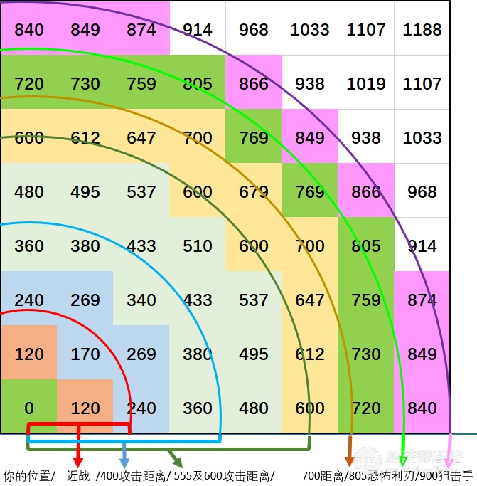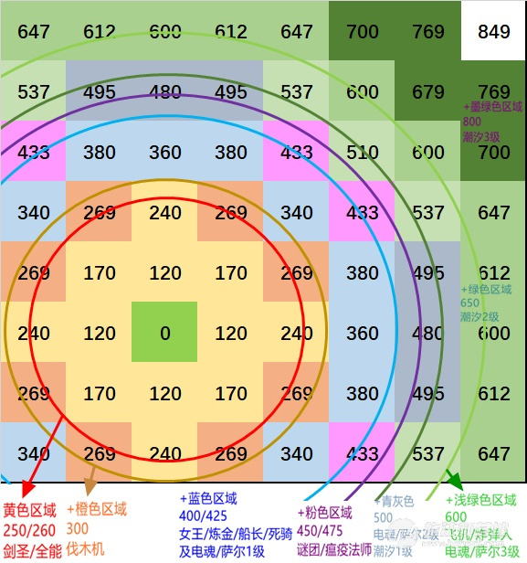 长距离:600 / 555(龙骑变身)/700(矮人直升机)/805(恐怖利刃变身)/900(狙击手);
