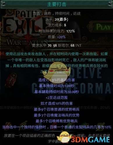 这苦痛爬行者看起来伤害非常非常高(所有它造成的伤害都是60%物理/40%混沌伤害), ZiggyD说即使天赋完全没点招唤物伤害,只要维持高层数毒性,这只东西就可以轻松清怪跟打王了.(因为它会范围伤害版的弹幕, 拜托别让这只进地图王 )