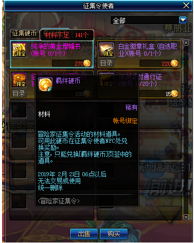 首先就是这个回归玩家征集令活动要结束了,大家别顾着刷硬币了,这个材料记得兑换。