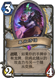 暮光侍僧:如果没有的小伙伴们可以换成一张灭,侍僧的作用其实和单解差不多,但是好处在于我们可以多一个大哥随从反站场。缺点在于需要龙牌的配合,如果手牌中没有龙牌,那么上3费2/4确实有点弱。但打奇数骑等卡组前期没随从可以上去交换场面。