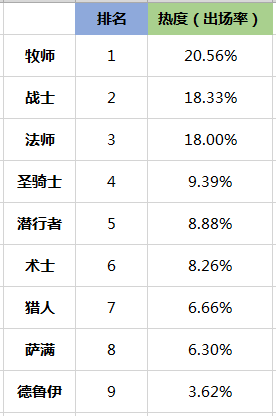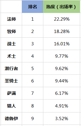 7胜以上的热度排名中,法师依然是第一,毕竟高胜的诱惑力还是比较大的,牧师和战士紧随其后。