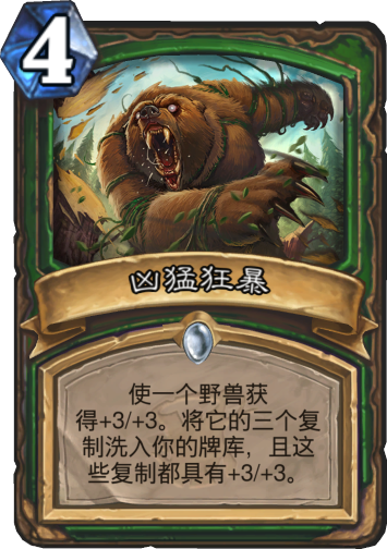 凶猛狂暴看上去节奏偏慢,其实和圣骑士的王者祝福比起来也只少加了11而已,而加的3个复制会让我们后续很好打。至少场面上优势会逐渐扩大,尽量加在冲锋突袭野兽身上,让之后他们一下场就能发挥作用。