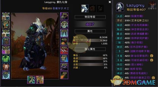 另外需要注意的是,碎片换的415特质装对恶魔术来说是垃圾,你只需要想办法拿 毛 到H老1衣服,H老3头,H老7肩膀,凑够3爆破+2狡诈+1怨毒就可以在团本里呼风唤雨了