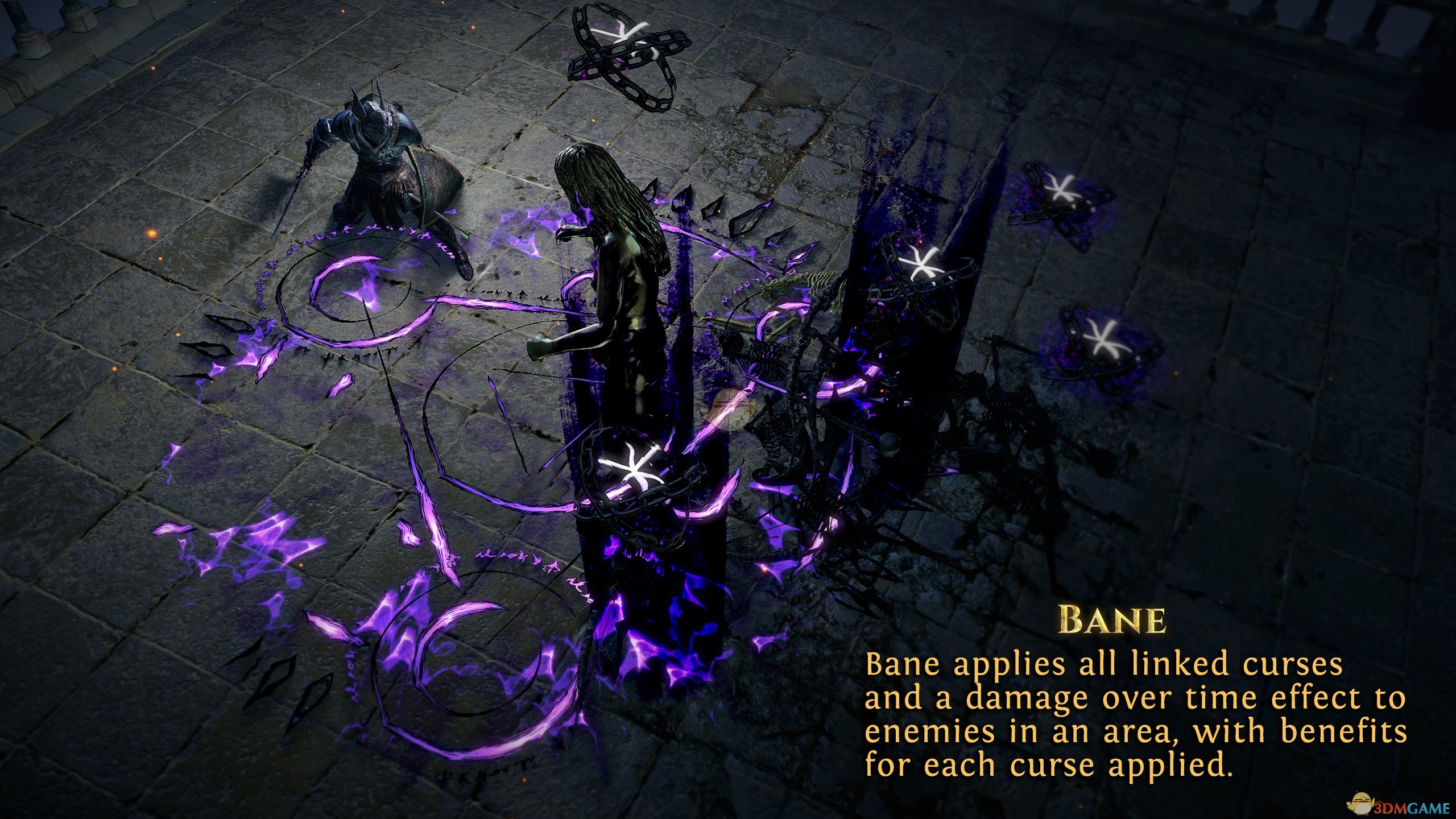 毁灭会施放所有连结的诅咒, 并且造成一个持续伤害. 敌人身上的诅咒越多, 这个持续伤害伤害加乘越高.