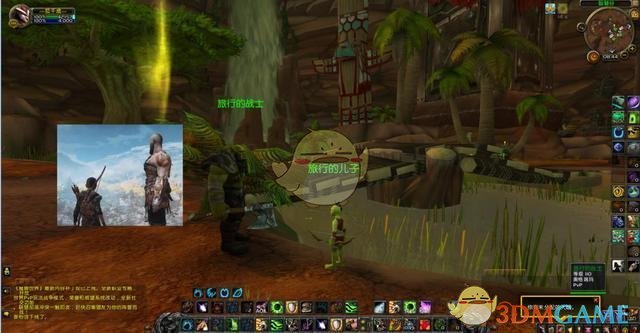 在奥格瑞玛中有一对父子NPC,一个叫旅行的战士,一个叫旅行的儿子。从两个人的造型和武器上来看,这应该是在致敬《战神4》中的奎托斯和他的儿子阿特柔斯。