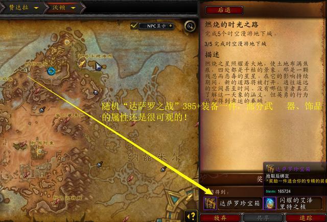 宝箱中包含一件普通模式的“达萨罗之战”的副本掉落,也就是385+,运气好的伙伴们同样能获得泰坦的青睐,415也是有可能的!