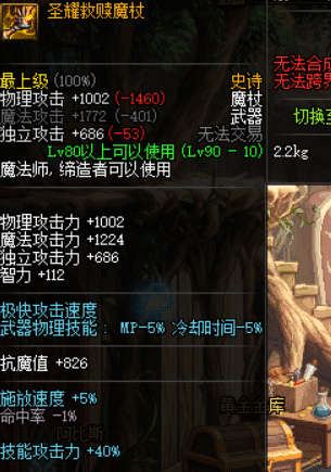 另外同为90史诗魔杖的圣耀和自制史诗魔杖的魔攻都是1224,独立都是686,而这额外多出171魔攻实际上就是宇宙真理的装备属性,只不过没有写出来。