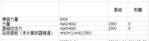 首先,第一组词条,也是最重要的词条,拿物理系百分比职业为例:力量、基础物理攻击力、伤害面板,这些都可以从增幅、强化、时装、宠物、光环、附魔等等途径获得,他的公式为:面板=基础物理攻击力×(1+力量/250),因职业以及武器种类不同,大众玩家在无附魔情况下的力量约为3300,基础物理攻击力为2300左右,那么做一个表格如下: