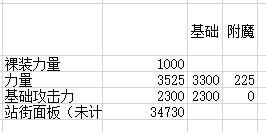 其中裸装力量因职业不同暂定为1000,现在我们再附魔上225力量得出: