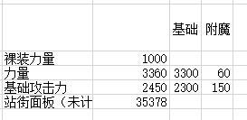我们把武器、上衣、下装附魔改为最高的物攻附魔卡皎玉之哈尔巴特(物攻+50;力量+20),那么实际增加150物攻、60力量,计算如下: