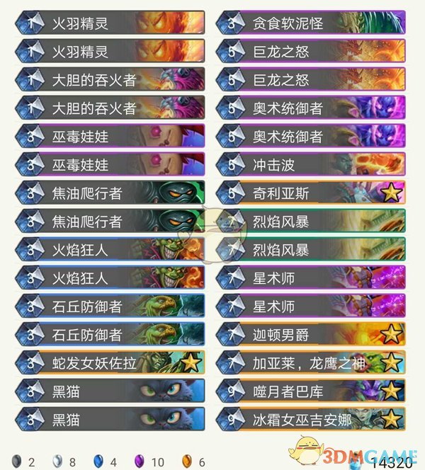 奇数法现在至少是T2顶端的水准,得益于两次的削弱补丁,奇数法终于真正流行起来,目前一般分为快攻奇数法和控制奇数法,控制奇数法前期通过英雄技能控制场面,卡手时通过大型AOE加奥术统御者返场,龙鹰之神是这个卡组的核心输出手段,尤其是打战士和猎人,也是蛇发女妖复制的最佳对象。