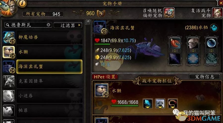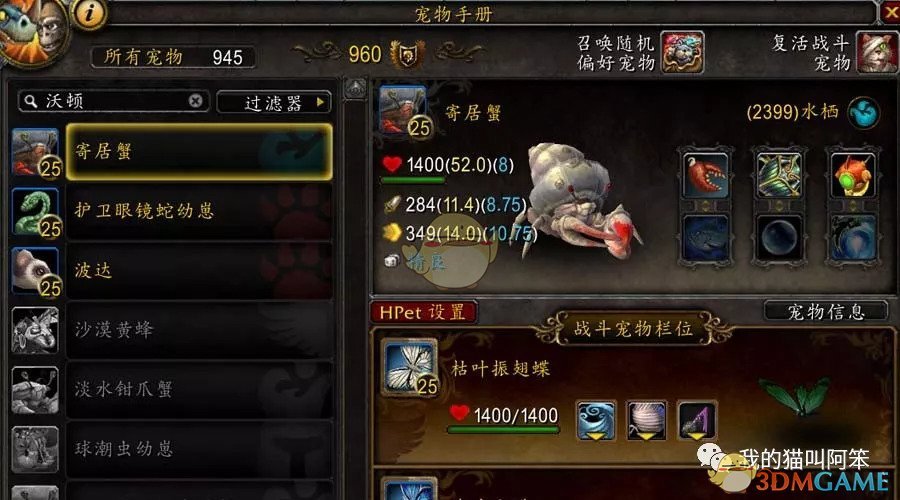 做争霸猎人成就可以不来沃顿,因为寄居蟹很多地图都有,我抓了只349速度的。只是沃顿西边海岸的好抓一些,有些地图的寄居蟹是在海底的。这里的寄居蟹会伴生宠物手册里显示纳兹米尔抓的小捋沙蟹,可以顺便捉。