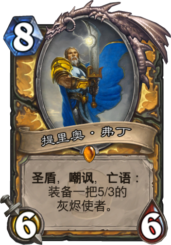 要说哪张经典职业橙卡活跃的时间最长,我相信就是佛丁了,从公测到目前都是非常强势的,虽然中间有一段时间被鱼人骑,奇数骑等挤压了上场空间,但笑到最后的还是他,不错的身材再加一把强大的刀,超模了快1倍的费用。