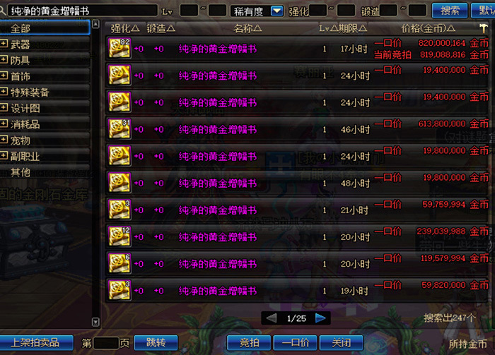 在时光之约活动中,第四次是有机会得到活动送的增幅卷的,这个几率比较小但不代表没有,从拍卖行这个道具的数量就可以看出,还是有相当一部分玩家开出了这个增幅卷,从+7到+10的范围内都有。那么问题来了,既然这次是以活动形式送给玩家的可交易道具,而且拍卖行仅仅只有5页,与魔盒开出道具的处境大不相同,那么是否会跟之前黄金增幅书产生较大区别,上演商人倒牛奶的事件呢?