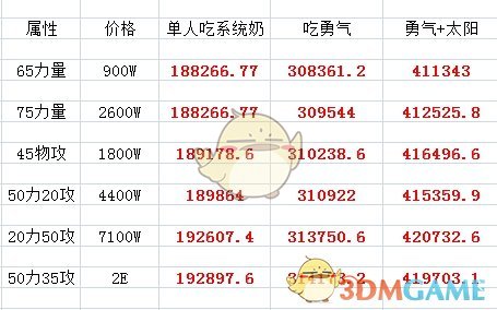 上图是大佬计算的结果,选取了6张当前版本上下衣的顶尖附魔为测试对象,测试对象是个站街3700+力量、58000+物攻的剑魂,奶妈是站街4940智力、28级勇气、21级太阳。虽然差距不大,但是还是可以看出附魔物攻要比附魔力量的伤害要高,这主要是因为超时空漩涡有系统BUFF和大奶的加持,力量点数本来就高,再多加力量整体的收益就显得不是太高了。