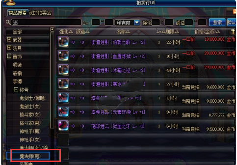 1、打开拍卖行→首饰→称号→选择职业→搜索。
