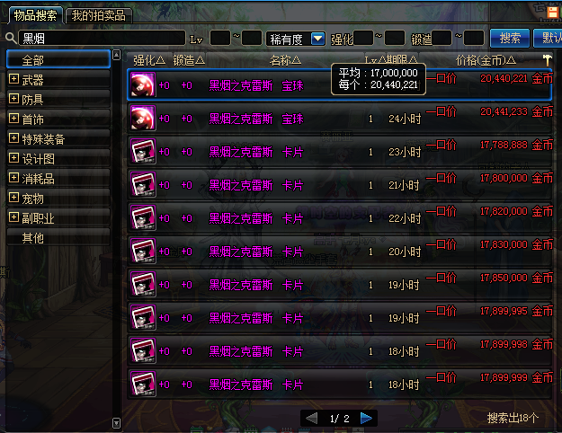 举个例子,20属强宝珠的黑烟之克雷斯,黑商前段时间进行了宝珠的全面清空,将卡片炒作到1700w金币,后续又上架2000w金币的黑烟属强卡,价格的差距很明显了。所以就拍卖行的环境来看,选择20属强附魔已经不合适了,而19点全属强宝珠在价格较低的基础上,还因为两个原因,导致了这个道具不太可能涨价。