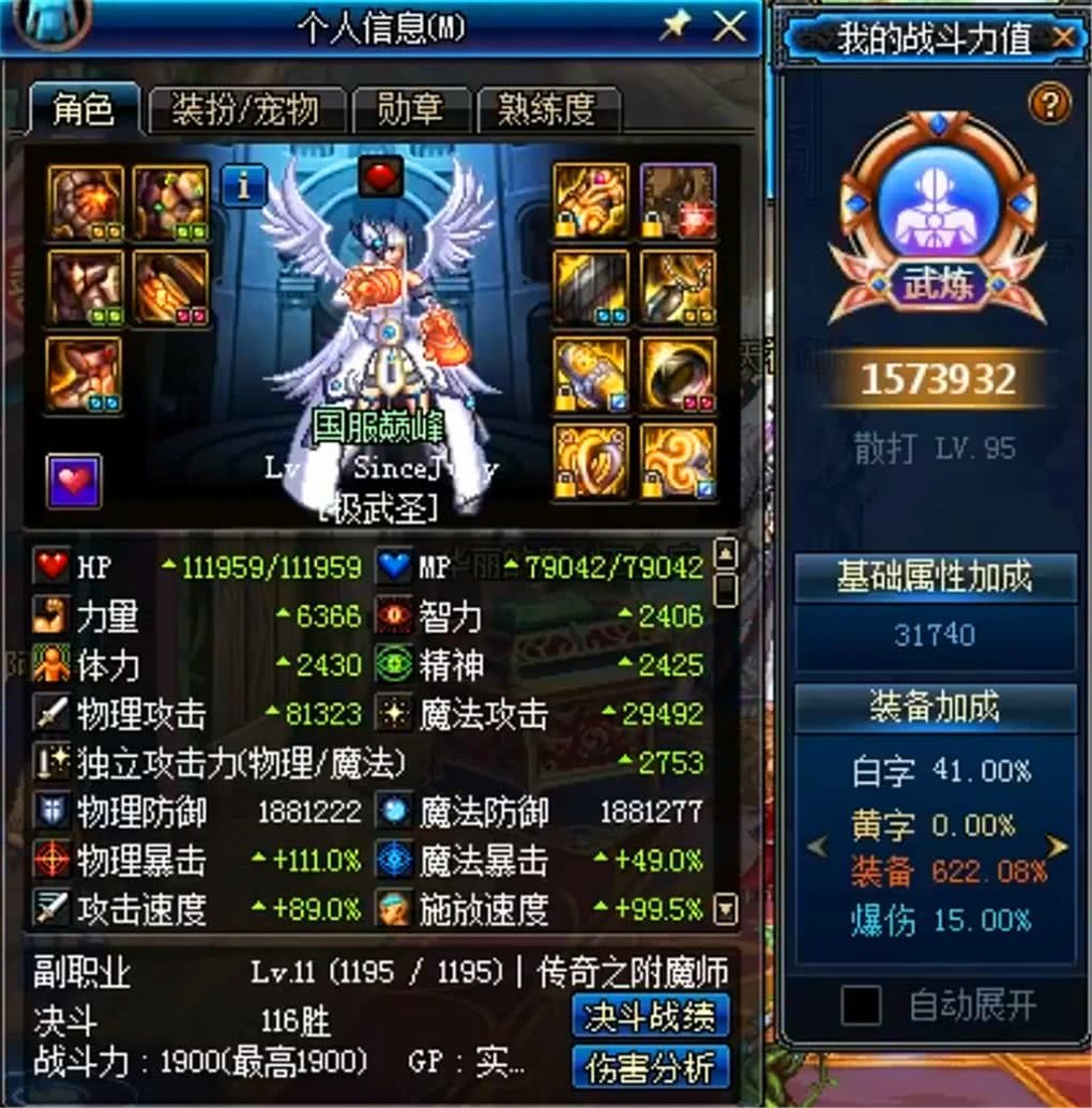 展示四个职业战力最高是它,当前版本幻神一姐的剑魔,也是除了增幅15苍穹巨剑外,一身装备增幅14全是90版本毕业装备,但是战力却要比刺客还要高出20万左右。这间接说明了职业还是有一定差距存在。