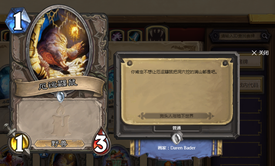 1费1/3带野兽属性,是当下猎人和曾经的奇数贼的最爱,可以搭配猎人的一些卡牌打出许多COMBO。所以,基本上早期的奇数贼都会将他纳入到牌库当中。也算得上是一张非常优质的1费随从了。