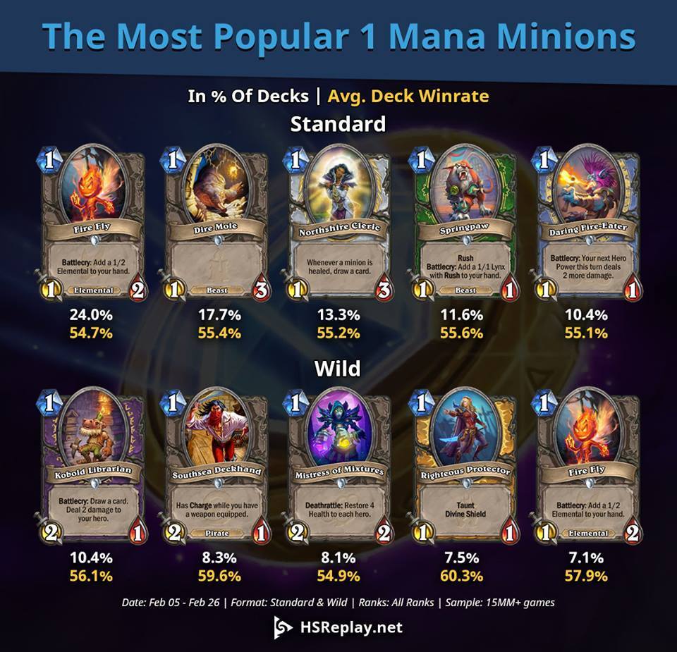 至于狂野模式下的随从,这里就不一一为大家盘点了。但是值得注意的是,火羽精灵在狂野模式和标准模式下都是1费使用频率最高的卡,也可以看出这张卡牌到底有多万金油。
