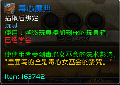 魔兽世界新资料片添加了很多新玩具,这是其中新玩具"毒心魔典“”的获取方式,一起来看看吧。