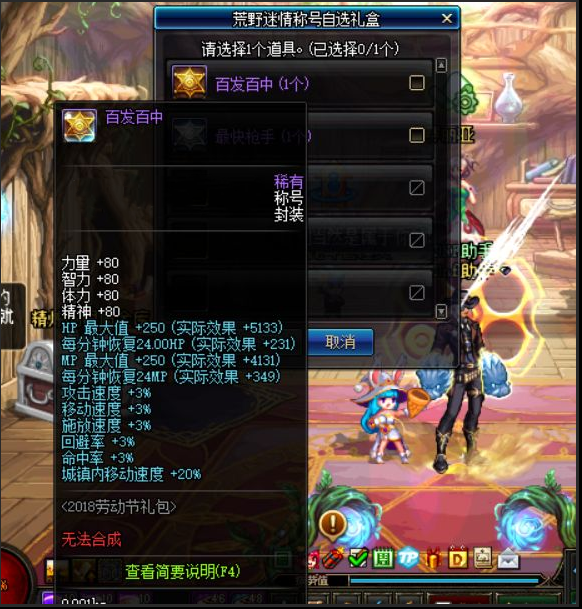 首先,我们先来看看技能称号,首先我们可以看到单单从称号来看,基本上可以说就是一个阉割版的新年称号,也就是去掉了白字属强以及攻击力等等有用属性的白板称号,当然有人会说,小编这个称号或许垃圾,但是胜在可以附魔宝珠加两级技能哟。确实,这次腾讯对于五一称号的设定就是能给称号附魔宝珠加技能,很多人都在想这要是能加到2级的buff技能,那多好。