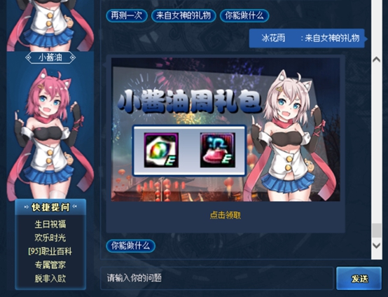 3、最后点击“来自女神的礼物”即可领取小酱油周礼包了!