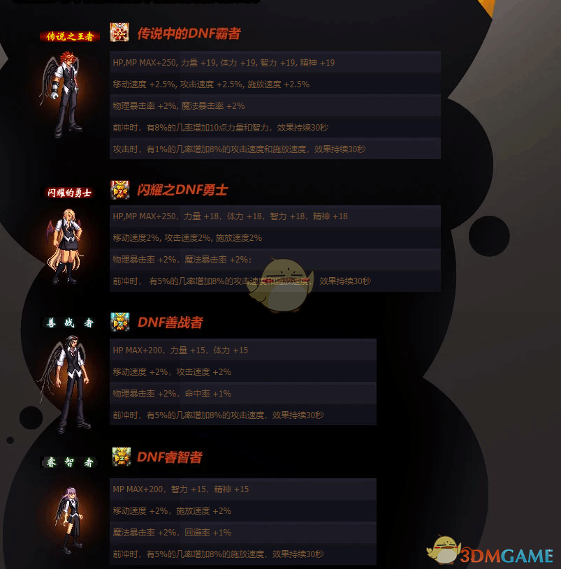 第五年,又是一个创新时代的一年,DNF出现了以前从未有过的周年庆称号及其附魔,而就是因为这个附魔的出现,才让DNF平民玩家跟土豪们的差距越拉越大。(估计玩奶爸的人应该都知道那无敌绝版称号三级荣誉吧,就是在这五周年庆上出现的,而这一年还出现了黄金增幅书!!!)
