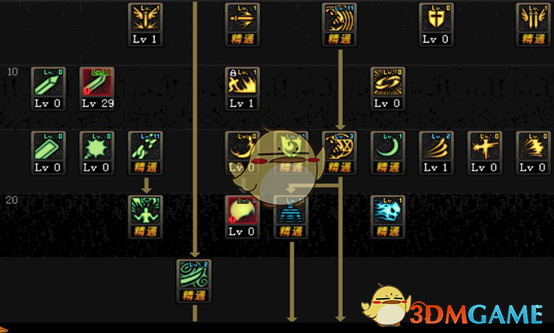 鬼斩没有圈进图内,不过这个版本鬼斩只是作为前置技能点了一级而已。图中我点的是太刀精通,不过在鬼泣已改为百分比职业的如今还是推荐用短剑的。可以看出我们的技能加点主要就是一些伤害较高的爆发技能与可柔化的脱手技能。