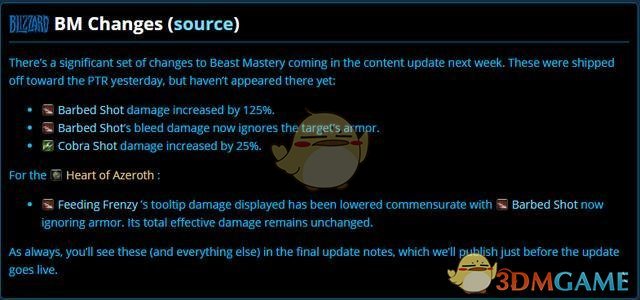 在下周的内容更新中,野兽控制猎人将会有一系列重大改动。这些改动已经在昨天推送到PTR上,但还没有实装: