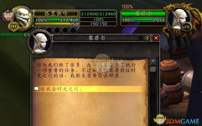 能拿大地的裂变版本橙杖:巨龙之怒,泰蕾苟萨的寄魂杖的职业,可以在上面的NPC处接到任务“传奇的邀请”。之后和NPC对话能传送到时光之穴的阿纳克洛斯面前。