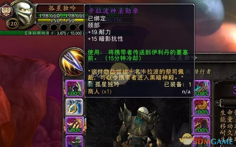做过黑暗神殿开门任务线的玩家可以拿到卡拉波神圣勋章,使用后能传到黑暗神殿门口(15分钟冷却)。如果蛋刀一直没刷出来,建议清下这个系列任务吧。