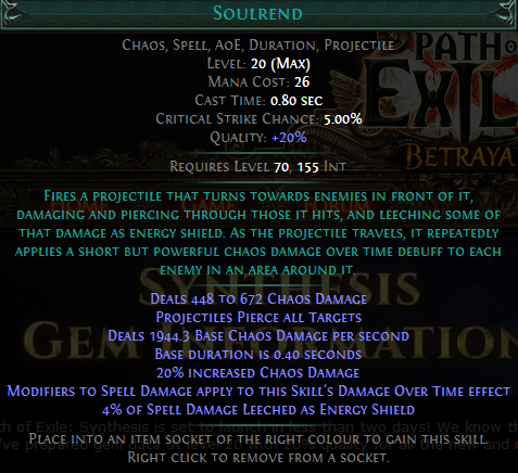流放之路3.6赛季添加了不少新的技能,其中有很多是混沌法术技能,例如灵魂撕裂正是当中之一。那么以该技能为核心怎么搭配BD呢?下面就为大家带来流放之路3.6欺诈者混沌灵魂撕裂BD攻略。